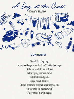 Auction items will be available to bid on in person at the event. If you're unable to attend but would like to purchase raffle tickets or make a donation on behalf of the Chapter, please click here.